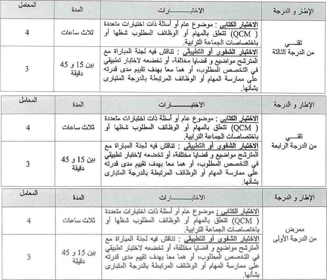تشتمل المباراة على اختبار كتابي واختبار شفوي أو تطبيقي. تفاصيل الاختبارات ومواعدها ستصدر مع النتائج.