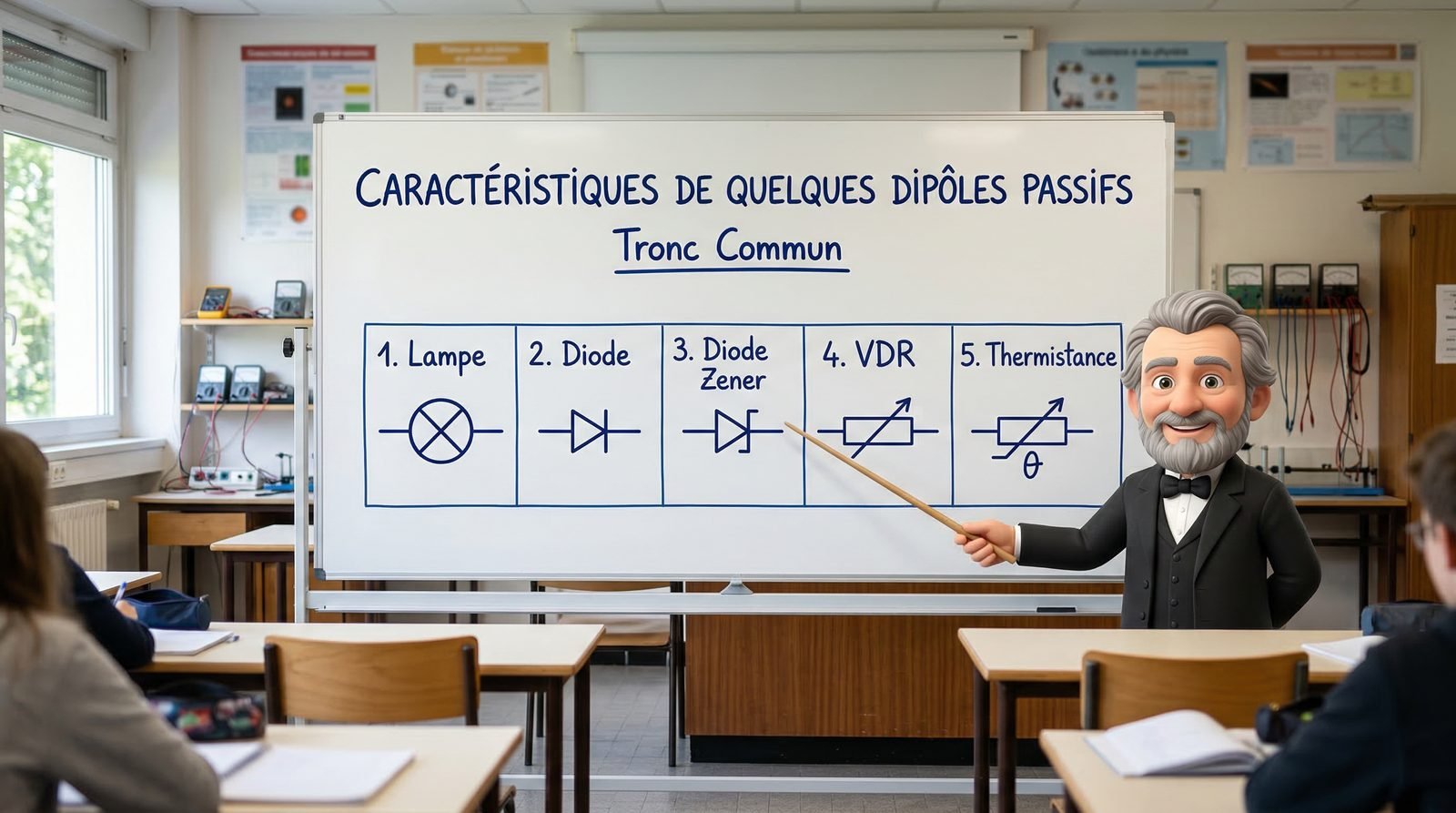 Caractéristiques de quelques dipôles passifs Tronc Commun est un chapitre central en électricité. Tu vas distinguer un dipôle passif, lire une caractéristique U-I et interpréter le comportement de la lampe, de la diode normale, de la diode Zener, de la VDR, de la thermistance et de la LDR.
